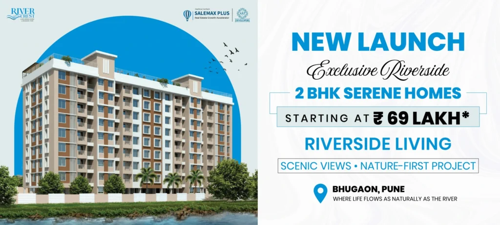 Introducing River Crest, Bhugaon – a premium residential sanctuary offering 2 BHK Serene Homes that blend modern sophistication with the tranquility of nature. Designed for those who seek an elevated lifestyle, these homes feature breathtaking waterfront views, elegant interiors, and a perfect balance of luxury and leisure.